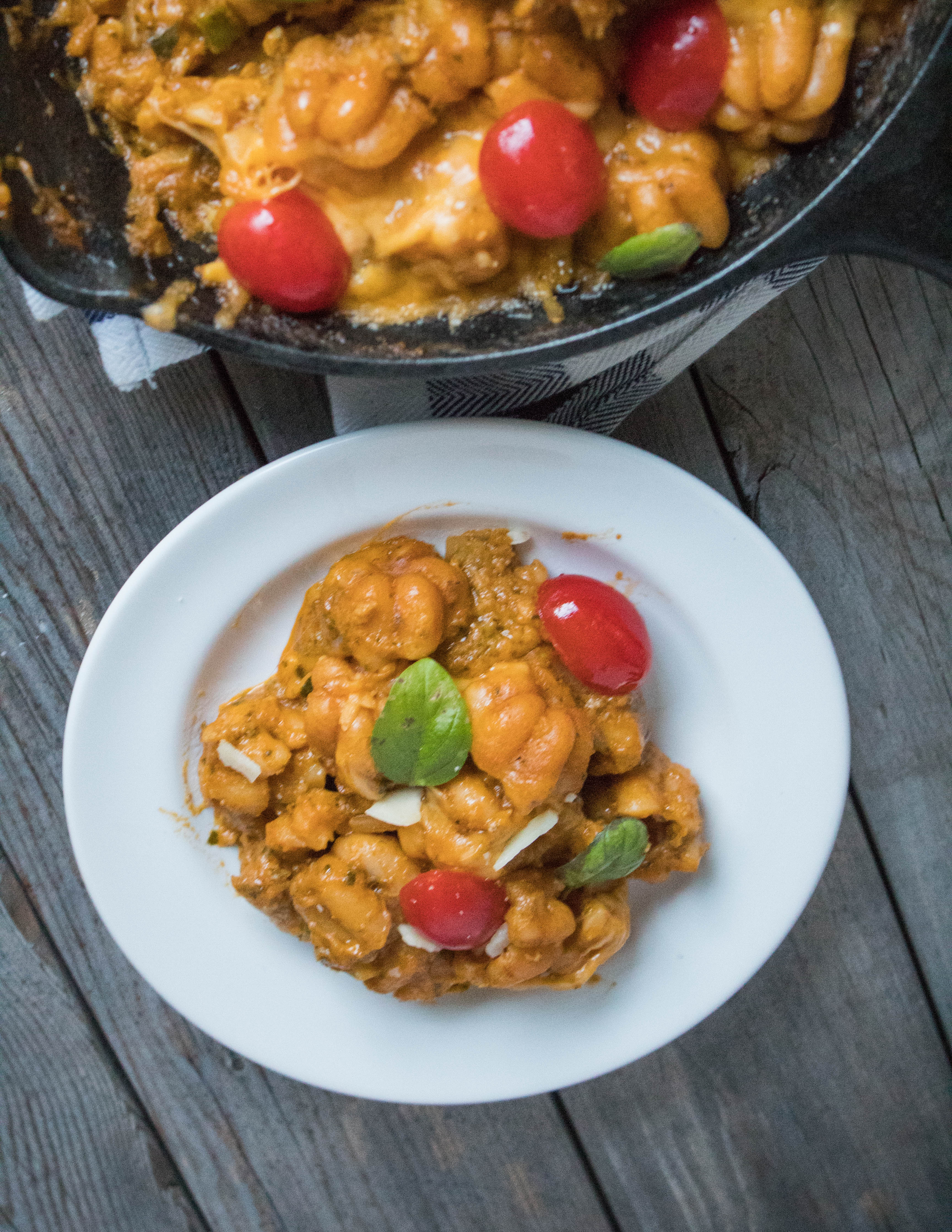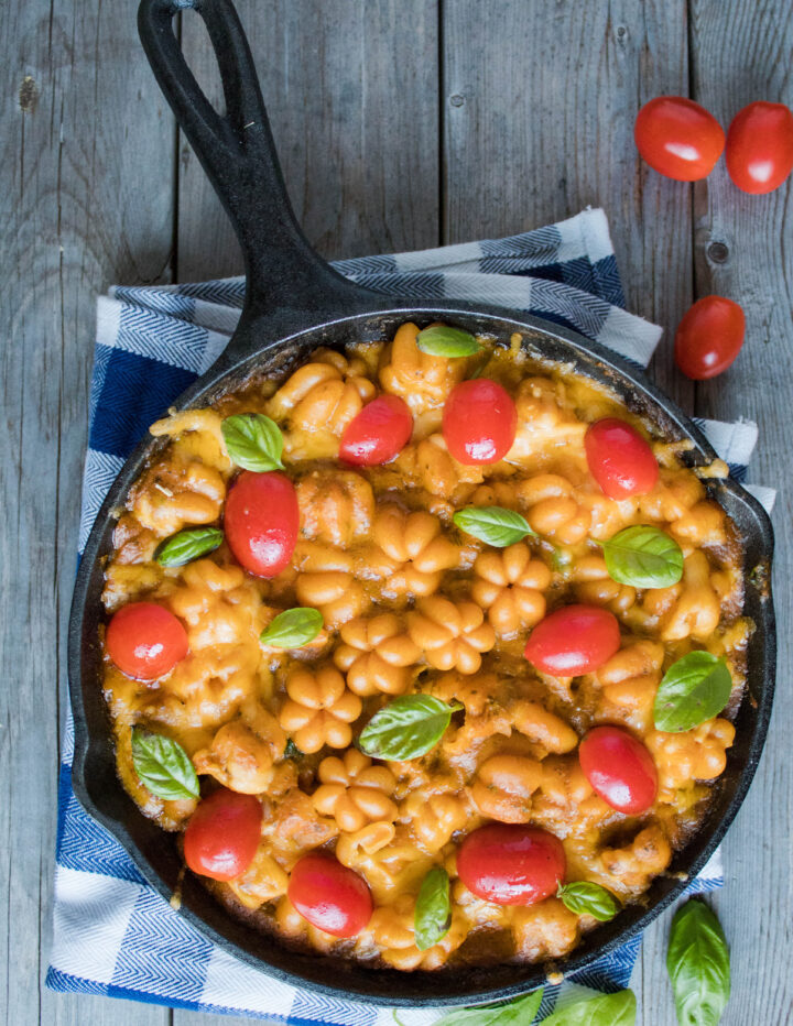 I made this pasta using butternut squash pasta in the shape of pumpkins from Trader Joe’s and also used their Autumnal Harvest Pasta Sauce, their Kale Cashew Pesto, my favorite spices, cheese and veggies and let me tell you, it was delicious and ready in less that 40 minutes.