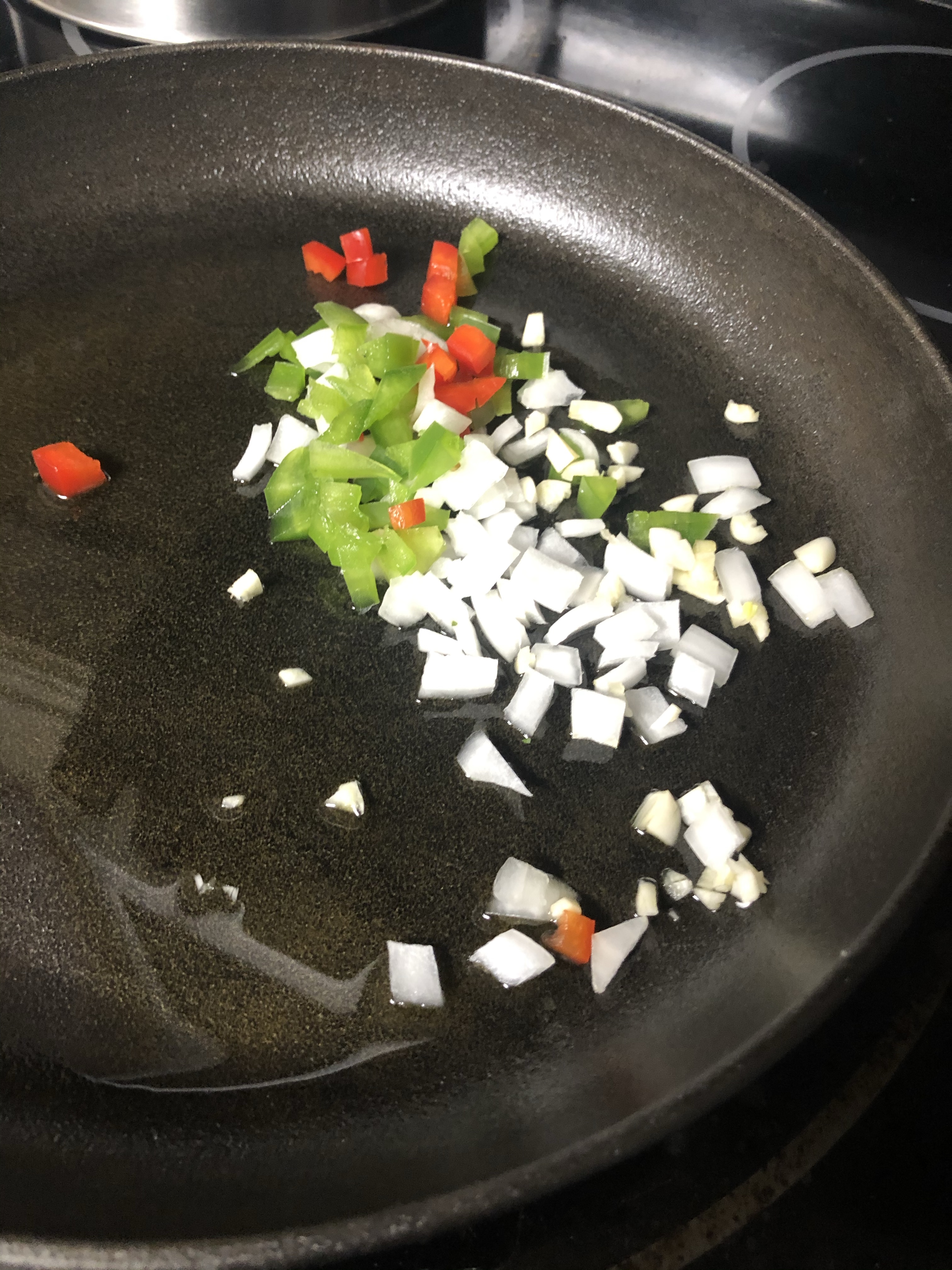 - Meanwhile, in a large skillet over low-medium heat, add vegetables and sauté for about 2 minutes.