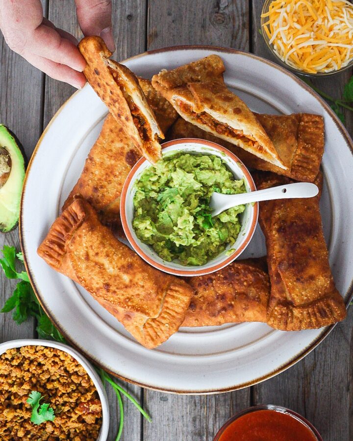 Even though they taste better when you fry them, you can totally bake them or use an air frier if you have one. The guacamole is optional but it’s a great complement for these tacos.