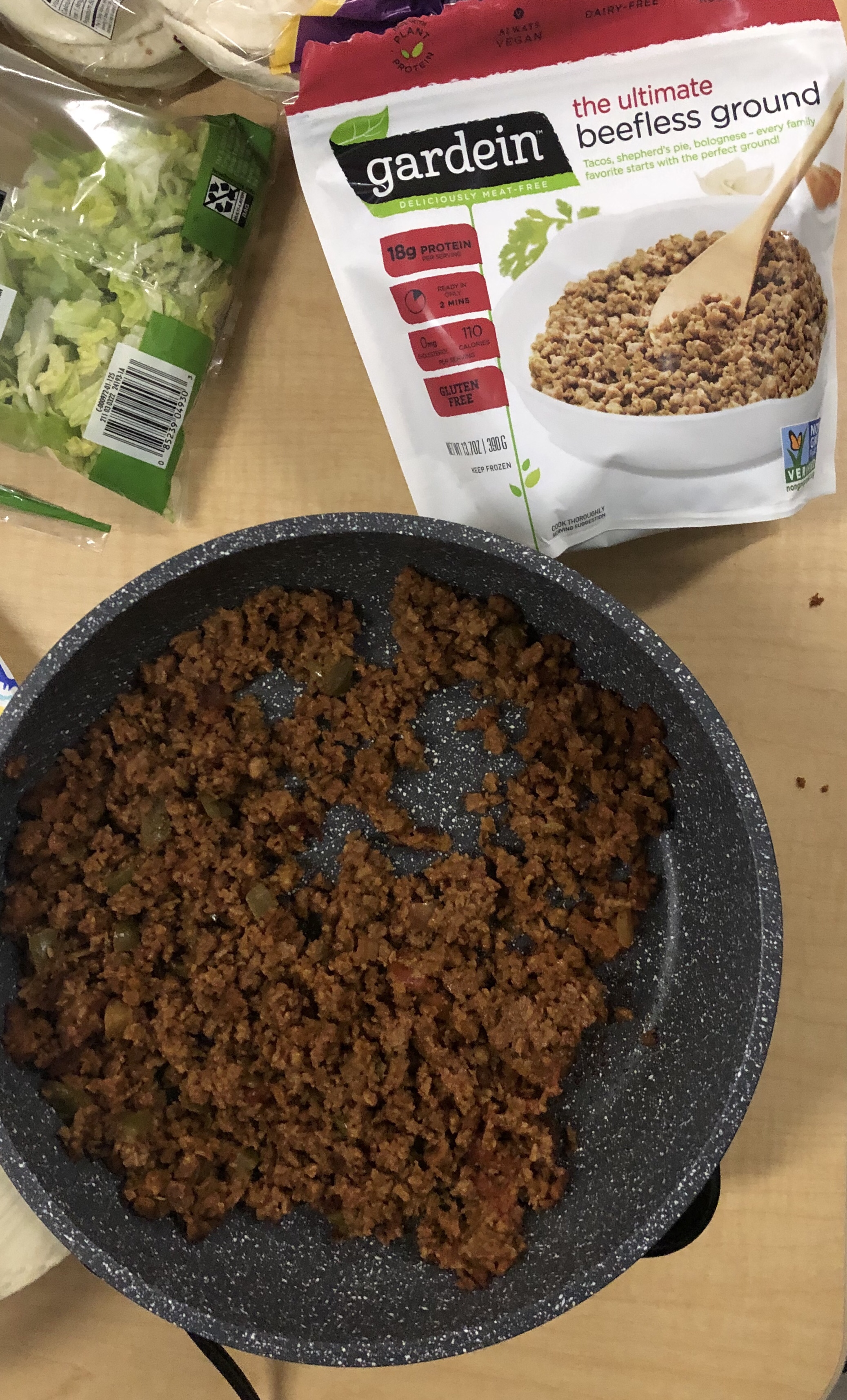 Gardein Beefless ground are my favorite meat replacement. (not sponsored, just sharing).
