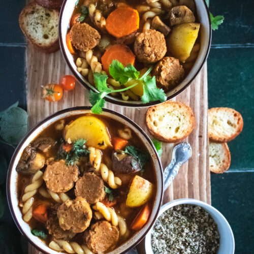 This Puerto Rican Chorizo Soup Vegan Recipe is: