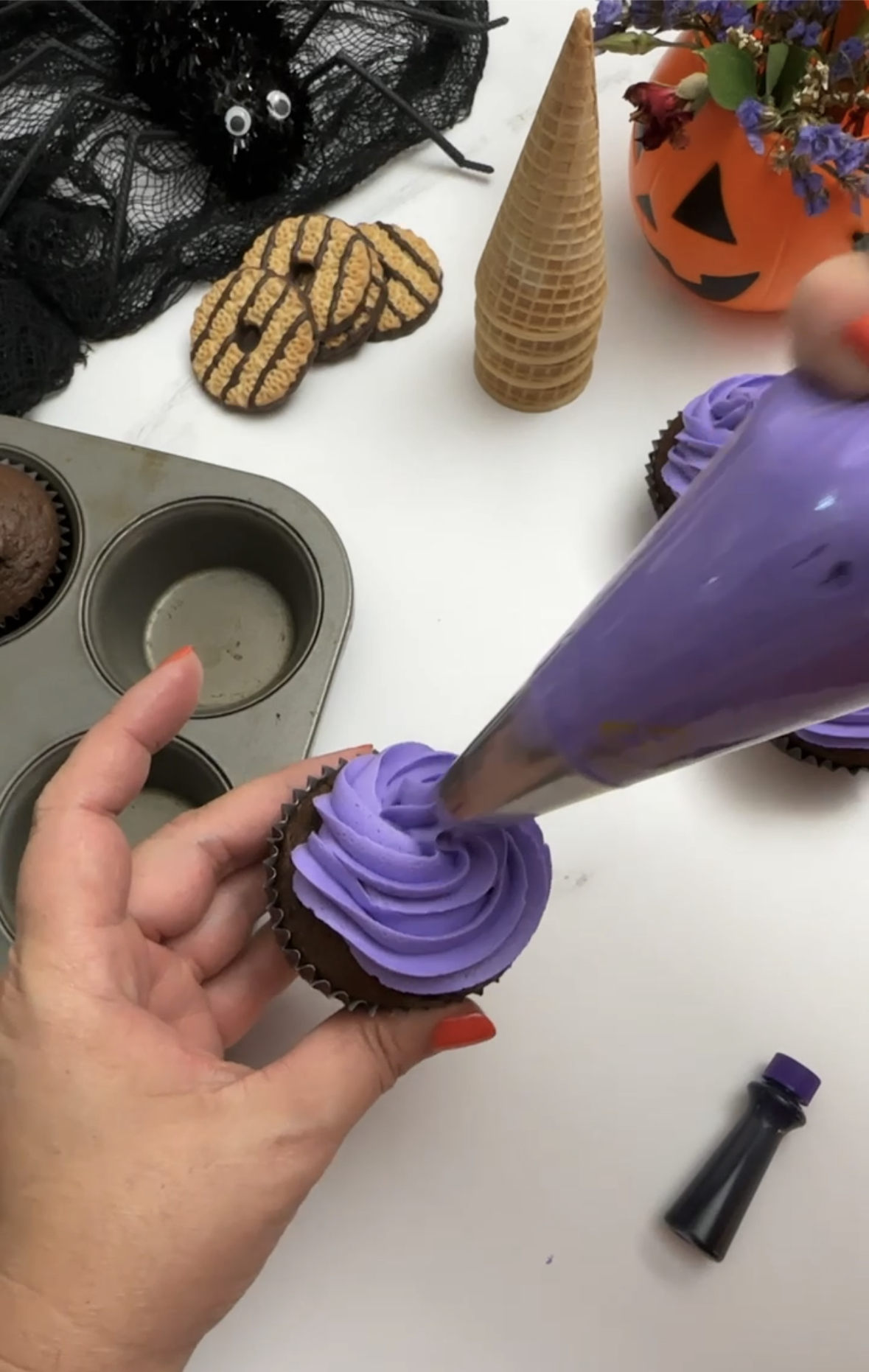 • Purple buttercream or icing (to frost the cupcakes)