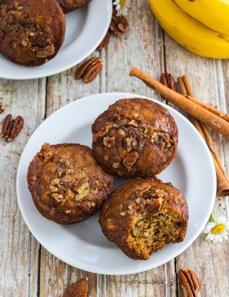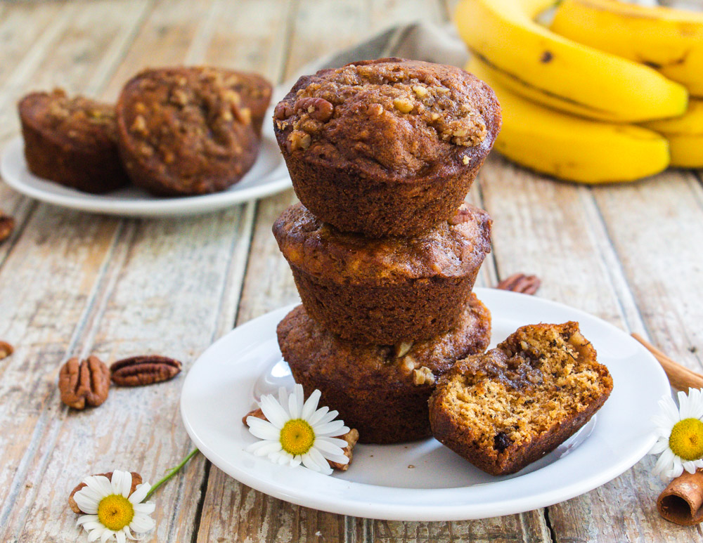 These muffins are the best banana muffins you’ll ever make. They are delicious, healthy and can be made gluten-free. The delicious and healthy walnut topping gives them a crunchy texture on the outside, but they are so moist and fluffy on the inside. Serve them for breakfast, snack or dessert.